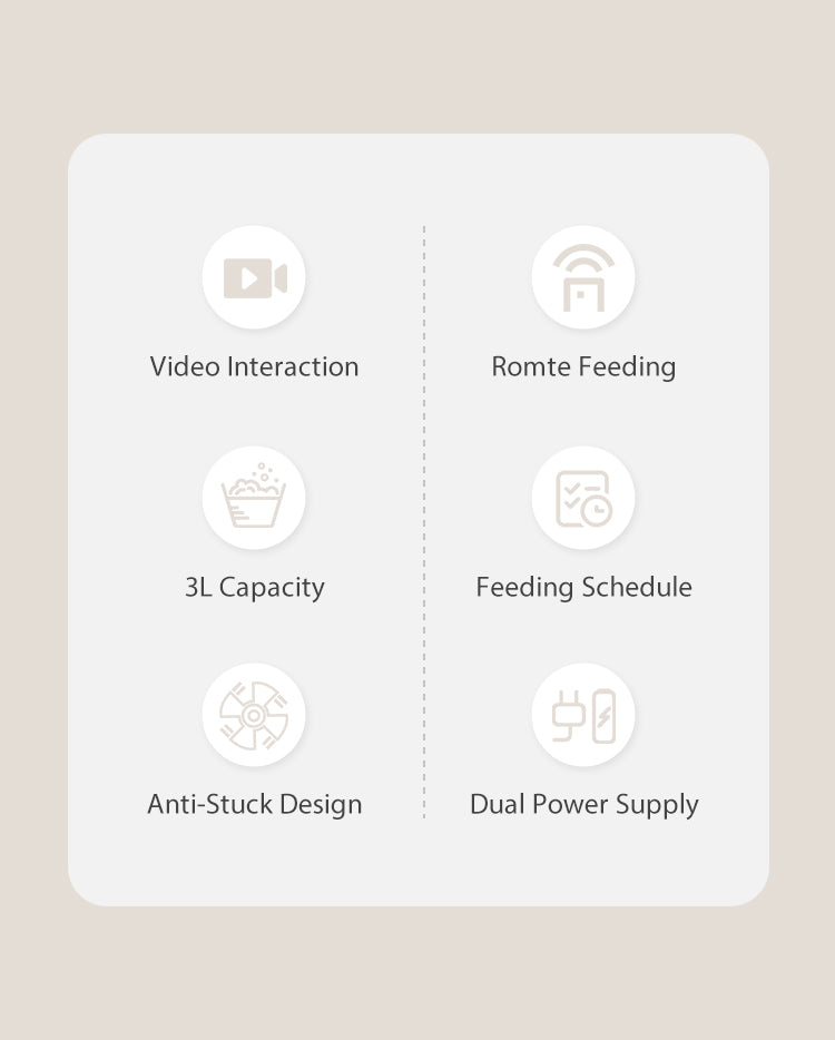 - Smart App Control:Remotely dispense food, schedulefeedings, and capture videos/photos through the application
